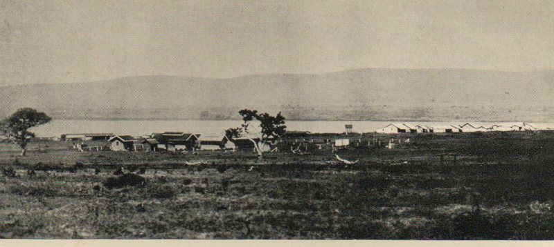 Kisumu Township in 1919. The photo was taken from the direction of Mosque Rd in the CBD near the present day Kenton Square. In the background are the railway hill and the lake. Hobley wrote that Kisumu town was full of small rocks which took him time to clear.