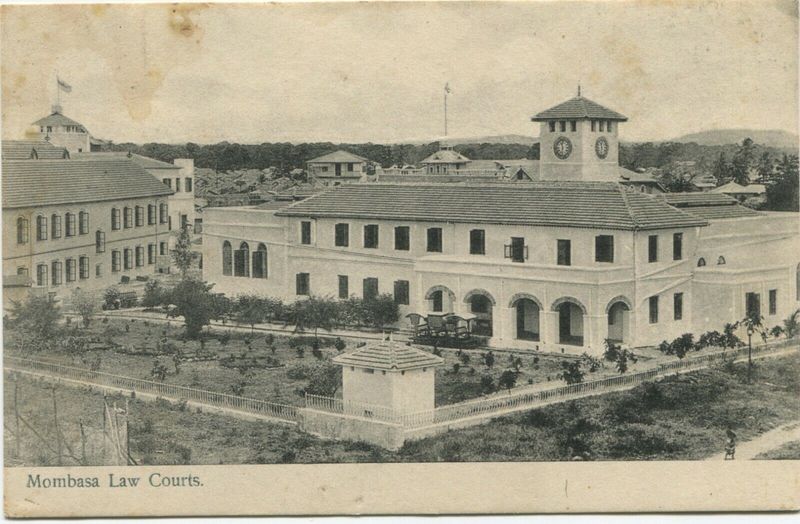 On 31 December 1902 a fine building to house the law courts, as shown below, was opened by the Commissioner, Sir Charles Eliot, and the High Court based in Zanzibar moved to Mombasa. To begin with